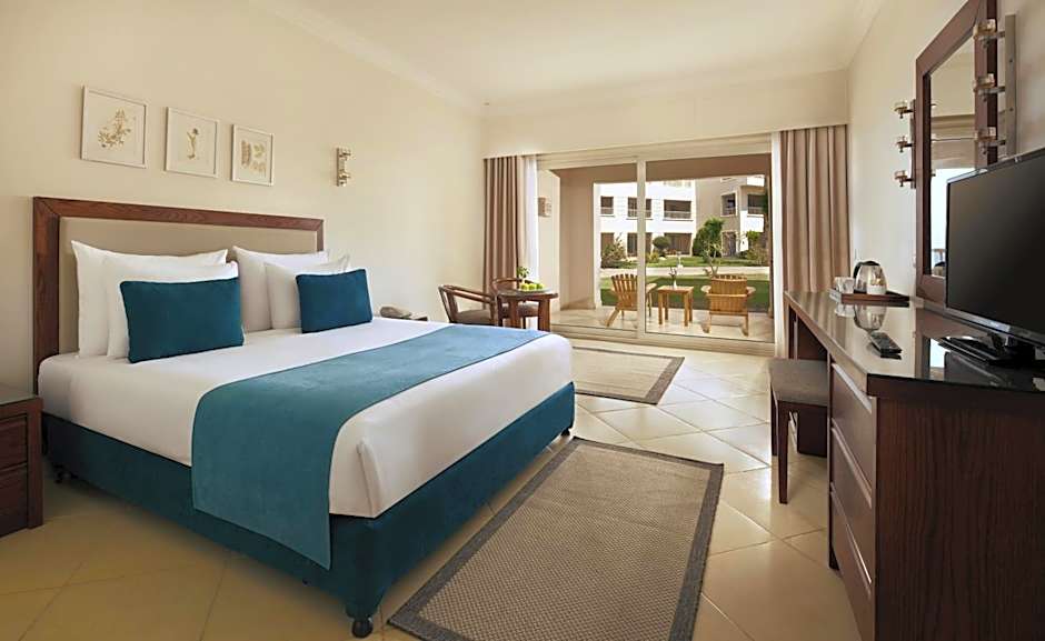 Cozy and intimate, these rooms are 50 sq. meters in size and overlook the garden or pool or Side Sea View. They have a king-sized bed and can accommodate a maximum of 2 adults or 2 adults and 1 child.